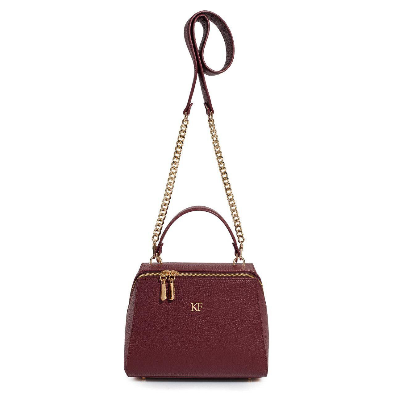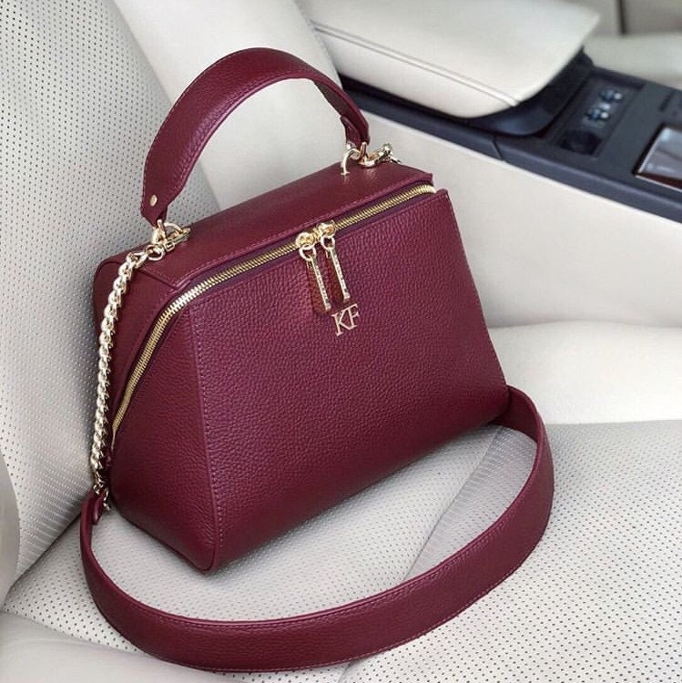 Marsala genuine leather handbag from ukrainian designer Katerina Fox. This model is designed for women who appreciate the sleek design combined with functionality and comfort. High-quality and reliable hardware ensure long service bags. The internal space of a bag is equipped with one spacious compartment and two patch-pockets and one zipper pocket. The bag is closed with a zipper. The bottom of the bag is protected with metal legs. There is a long handle that allows you to wear the bag on the shoulder. The kit also includes a storage bag.