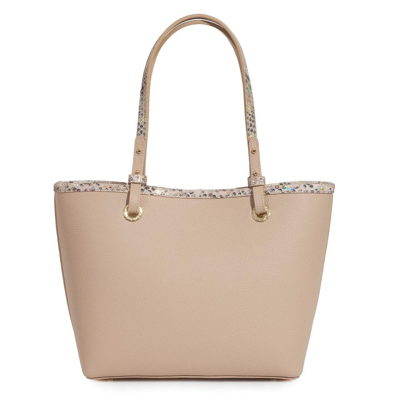 Leather Tote Bag, Beige Leather Tote Bag, Women's Leather Tote Bag KF-3467